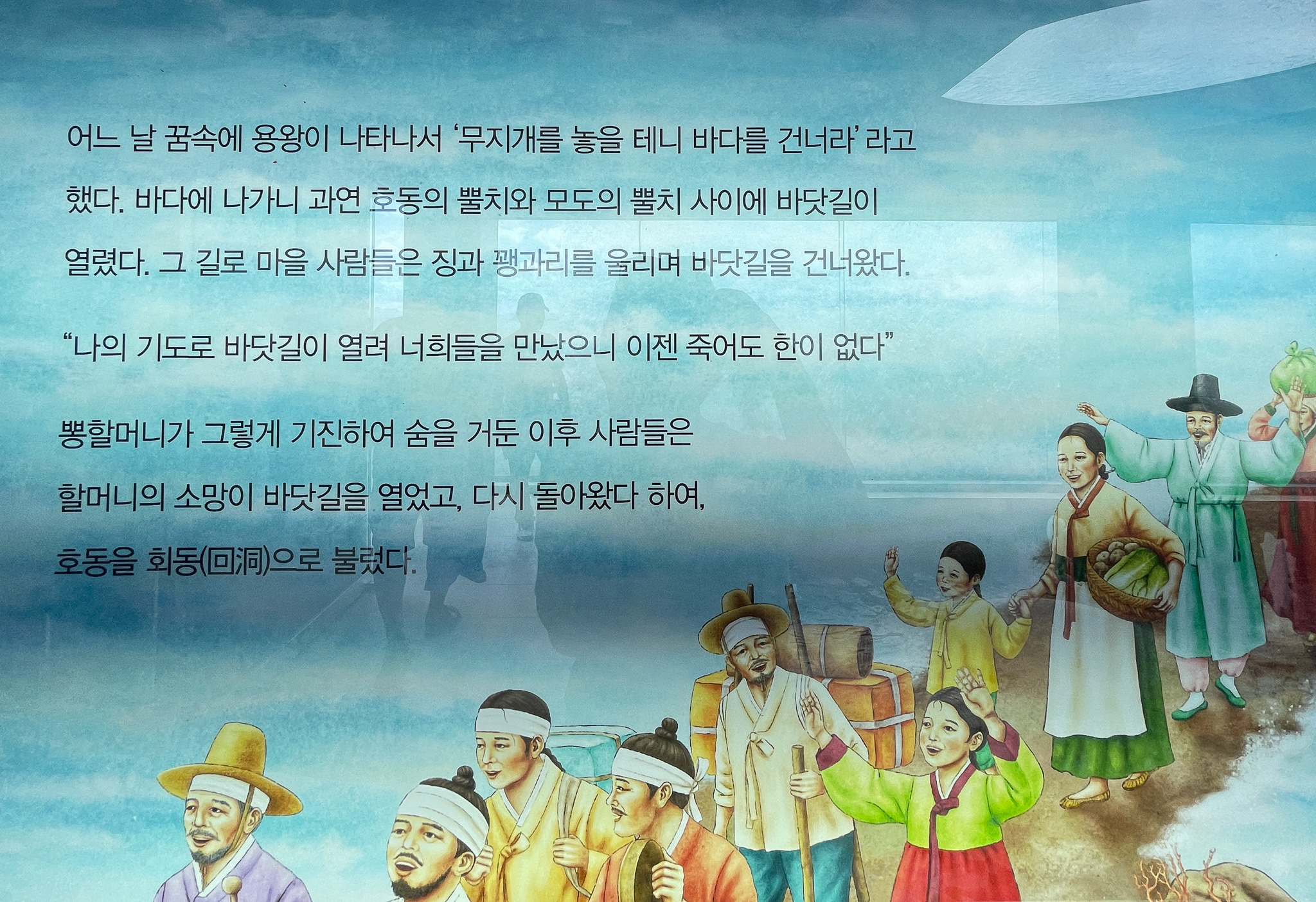 바다로 나가니 호동과 모도 사이에 바닷길이 열려