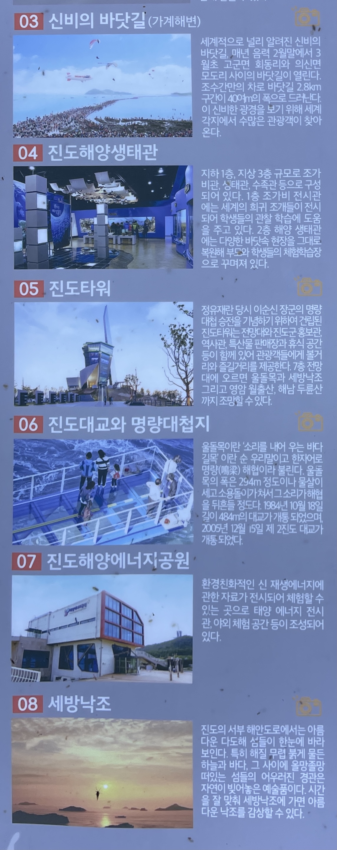 안녕하세요. 저는 9월에 신안 2박 여행을 하고, 진도에서 2박을 할 계획입니다. 진도 쏠비치에서 묵을 예정인데, 하루정도는 드라이브를 하지 않을까 싶어서 정리해 봤어요. 먼저 진도 여행지도